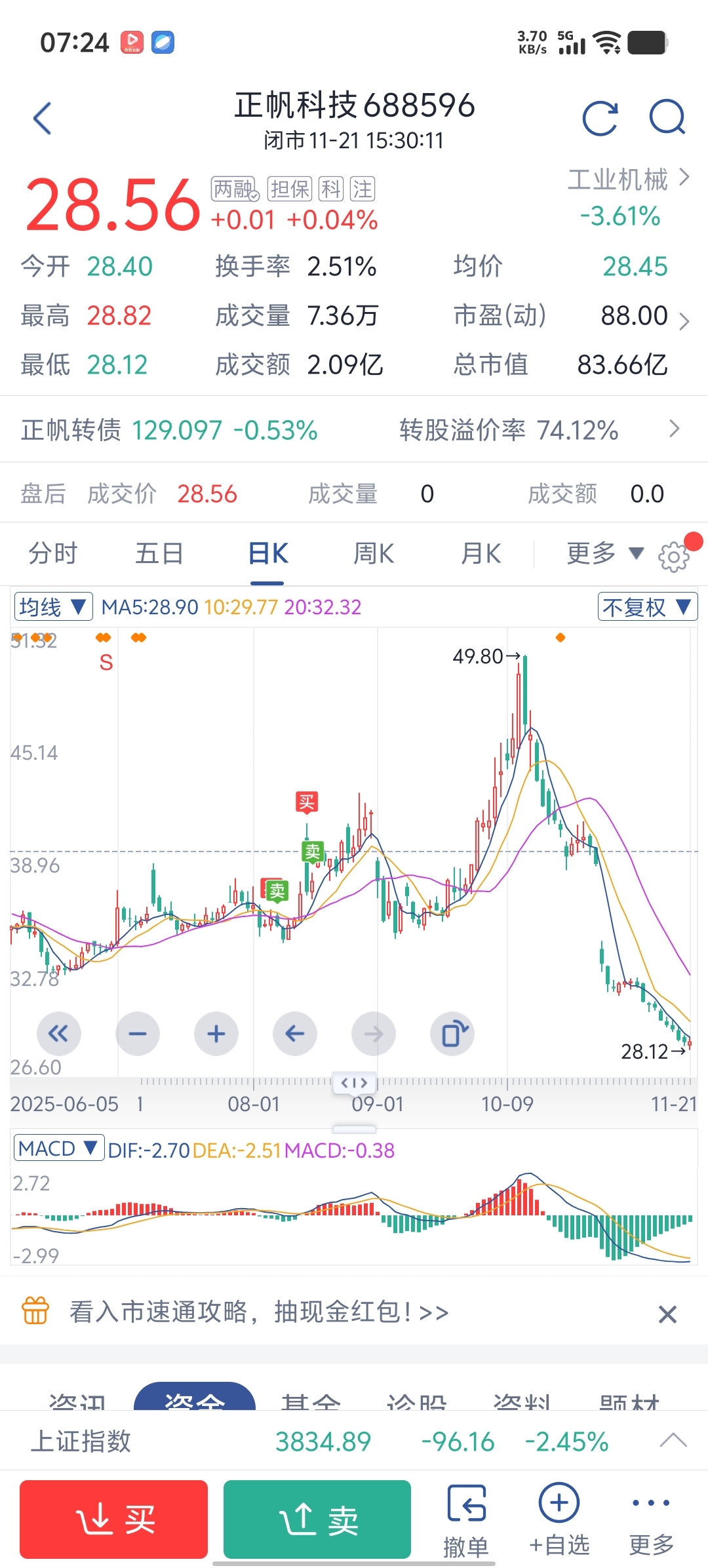 $正帆科技(SH688596)$ 2025年一正一反最大的雷,9.23号37-49还在可惜,现在无语啦,无处不在的风险,盯了三年37开仓第一笔,从你这赚了56000元。现在一看还是美埃最稳。