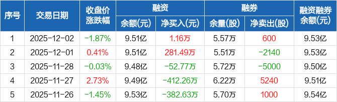 正帆科技:融资净买入1.16万元,融资余额9.51亿元(12-02)