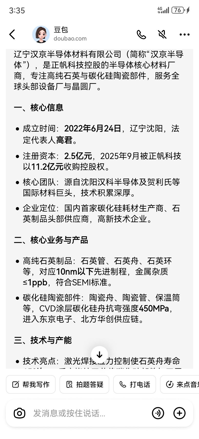其实正帆收购的汉京半导体还是很牛的,国内首条碳化硅零部件产线,陶瓷舟市占率15%