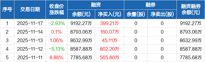 煜邦电力:连续5日融资净买入累计1972.4万元(11-17)