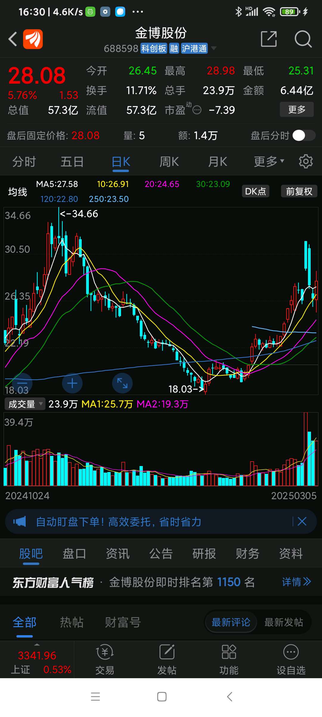 金博股份今日(250305三)走势表明,跌得多调得深就反弹快涨得高