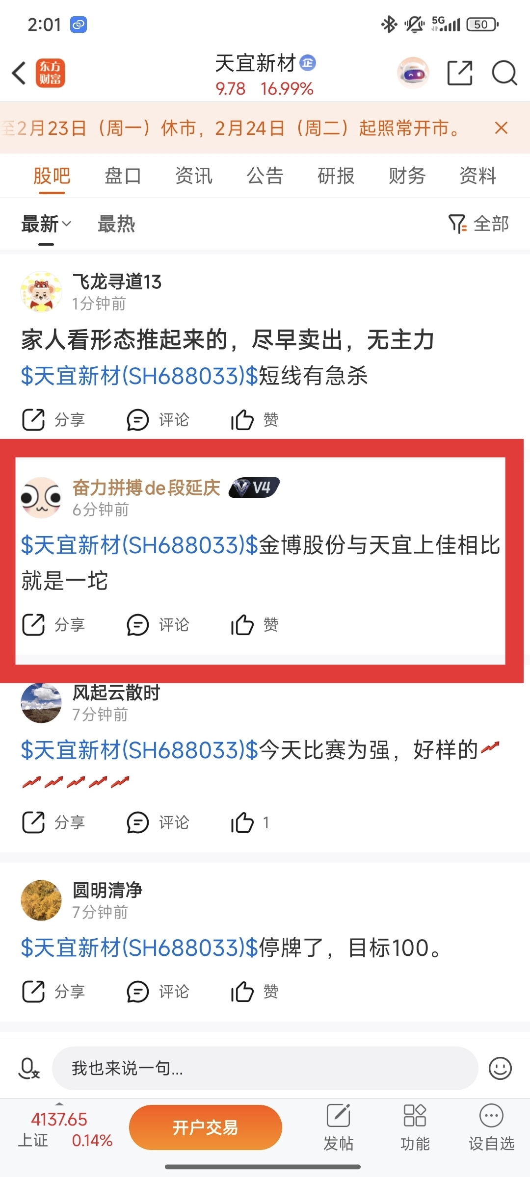 温馨提示: 1.根据《证券法》规定,禁止编造、传播虚假信息或者误导性信息,扰乱证券市场;2.用户在本社区发表的所有资料、言论等仅代表个人观点,与本网站立场无关,不对您构成任何投资建议。用户应基于自己的独立判断,自行决定证券投资并承担相应风险。《东方财富社区管理规定》