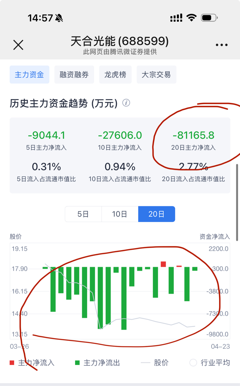$天合光能(SH688599)$ 最近20天就减持了9个亿左右,拉长周期再算算会出来个公司要被卖掉的数字………接手的基本都是抄底的散户和加仓的套牢盘,你加仓了吗?