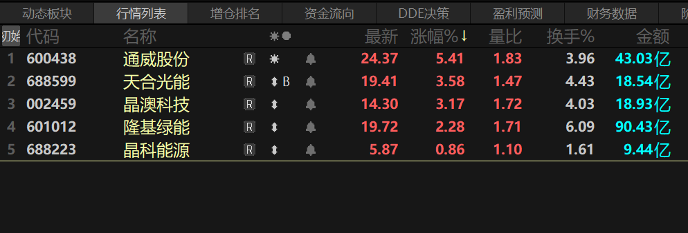 今天的排名很玄幻啊,通威竟然作了老大。