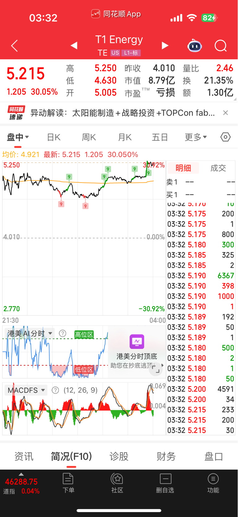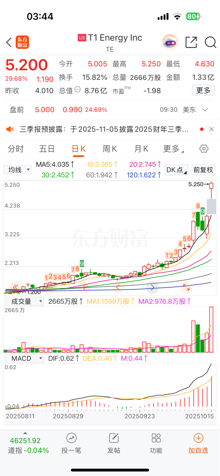 $天合光能(SH688599)$ 天合光能美国工厂投资1.5亿美元,转让获得1亿美元现金和1.5亿美元票据并获得T1 Energy4588万股股票,当时大约1美元(2024年11月6号),目前股价5.2美元,价值17亿人民币,欢迎资金今天砸盘呀