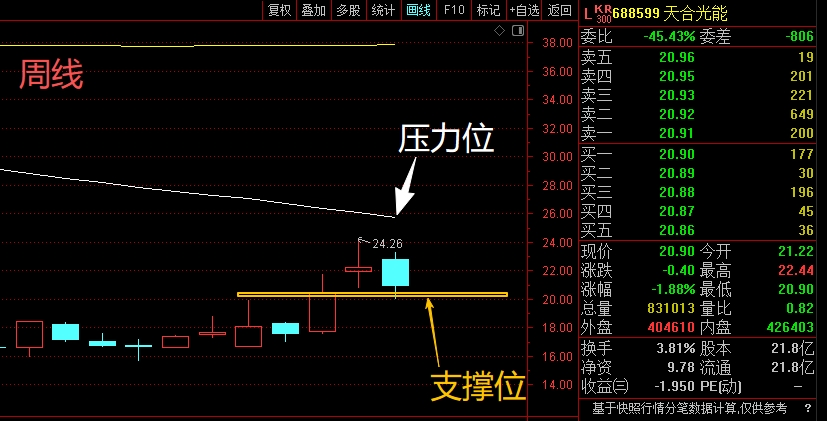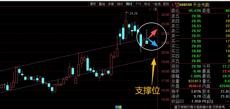 $天合光能(SH688599)$ 周线来看,主要看脚底横线的支撑,这里能稳住就还行,但头上大均线压力大,轻易过不去。日线来看主要是一个上升通道的运行,能沿着上沿位置震荡就比较稳,但兜不住就注意看下沿的支撑了,注意做好防守准备。