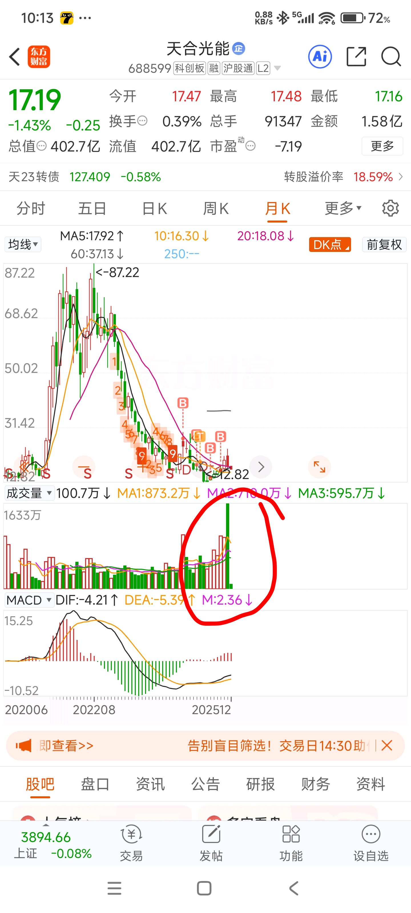 $天合光能(SH688599)$ 月线这根放量大阴线什么意思?这量是怎么来的?