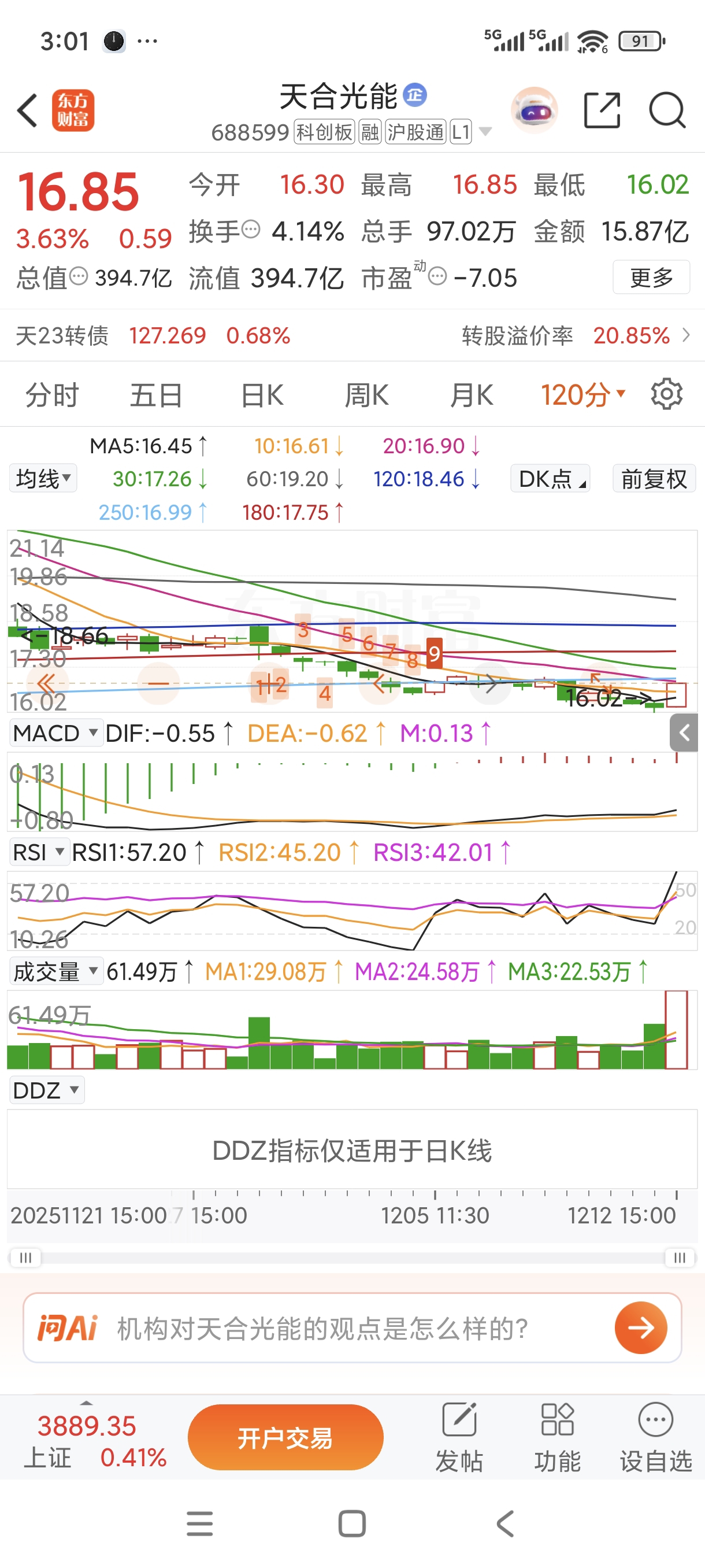 所有均线跌穿,120分时死叉反弹
