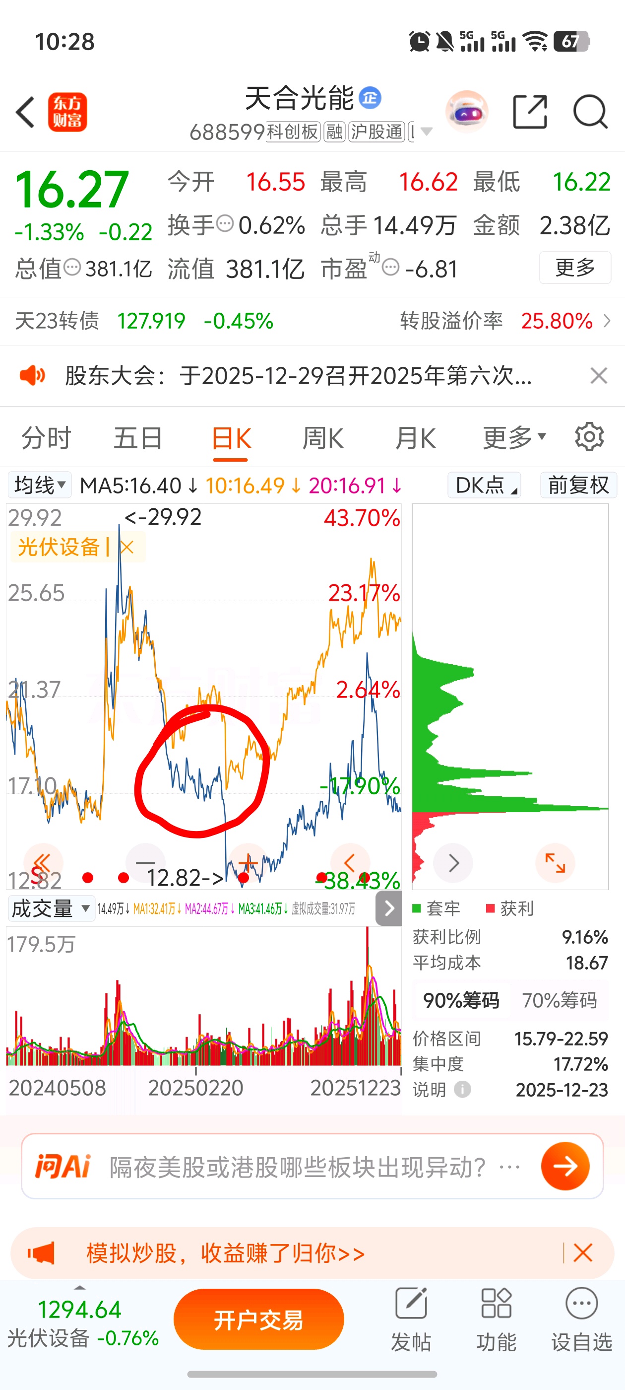 $天合光能(SH688599)$ 这个位置大家都在想双底了,双底了,在差不会比928行情前还差吧,但是恶庄就是恶庄,给你砸到12.8,砸完就横着,就不涨。