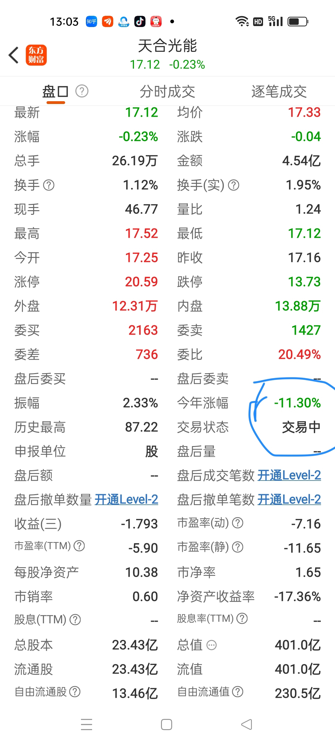 $天合光能(SH688599)$ 光伏里全年跌幅第一名