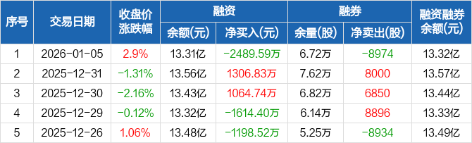 天合光能:融资净偿还2489.59万元,融资余额13.31亿元(01-05)