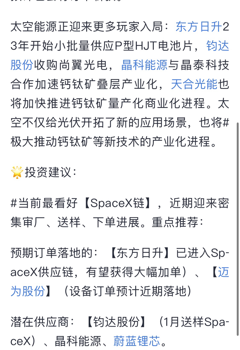 太空光伏!天合跟上日升,,日升已经供货了!!
