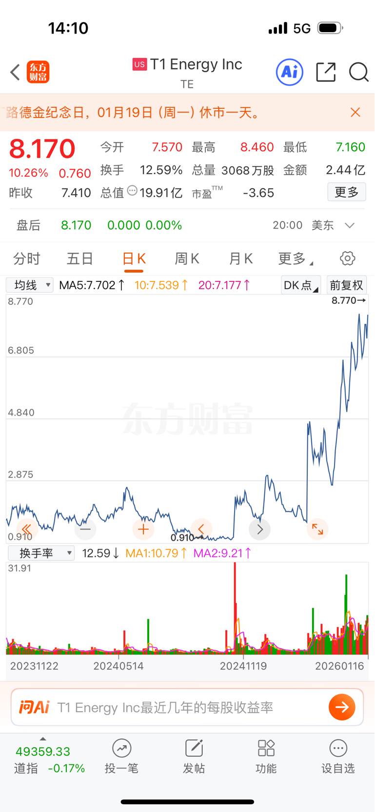 $天合光能(SH688599)$ 美股天合的影子公司,暴涨多少了
