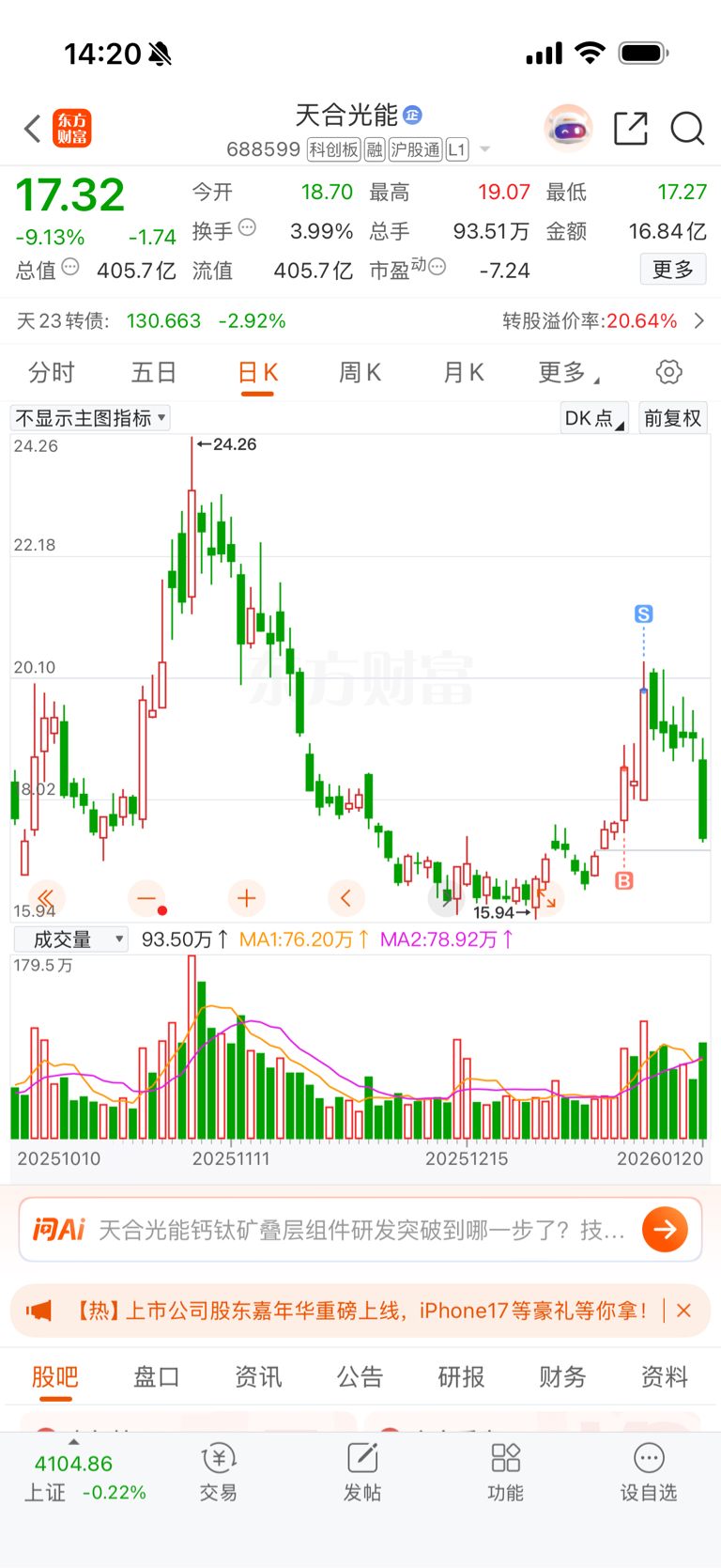 $天合光能(SH688599)$ 游资量化没业绩的票的下场......