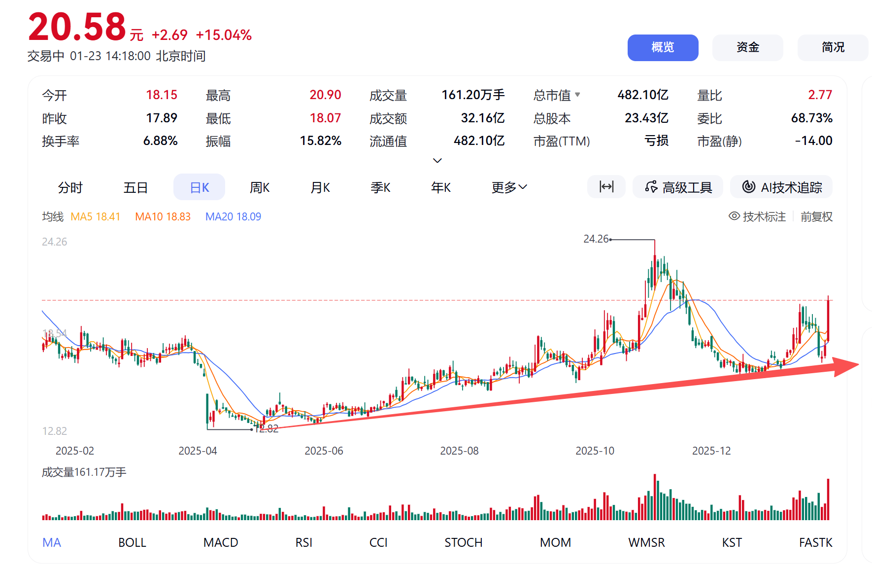 今天有点奇怪,中午收盘前放量上涨,午后13:02冲到20.90,稍微回落,13:49的时候又重新走高。