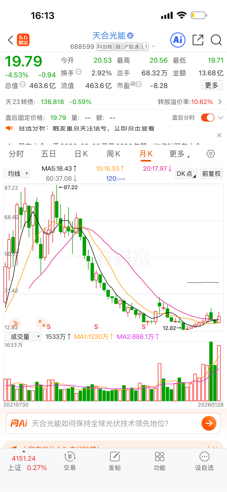 $天合光能(SH688599)$ 我是看了月线买进的