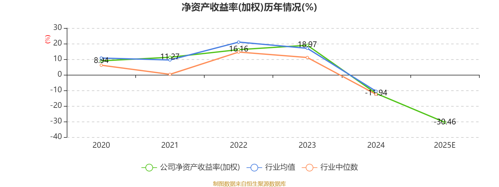 数据显示,2025年公司加权平均净资产收益率为-30.46%,较上年同期下降18.52个百分点。