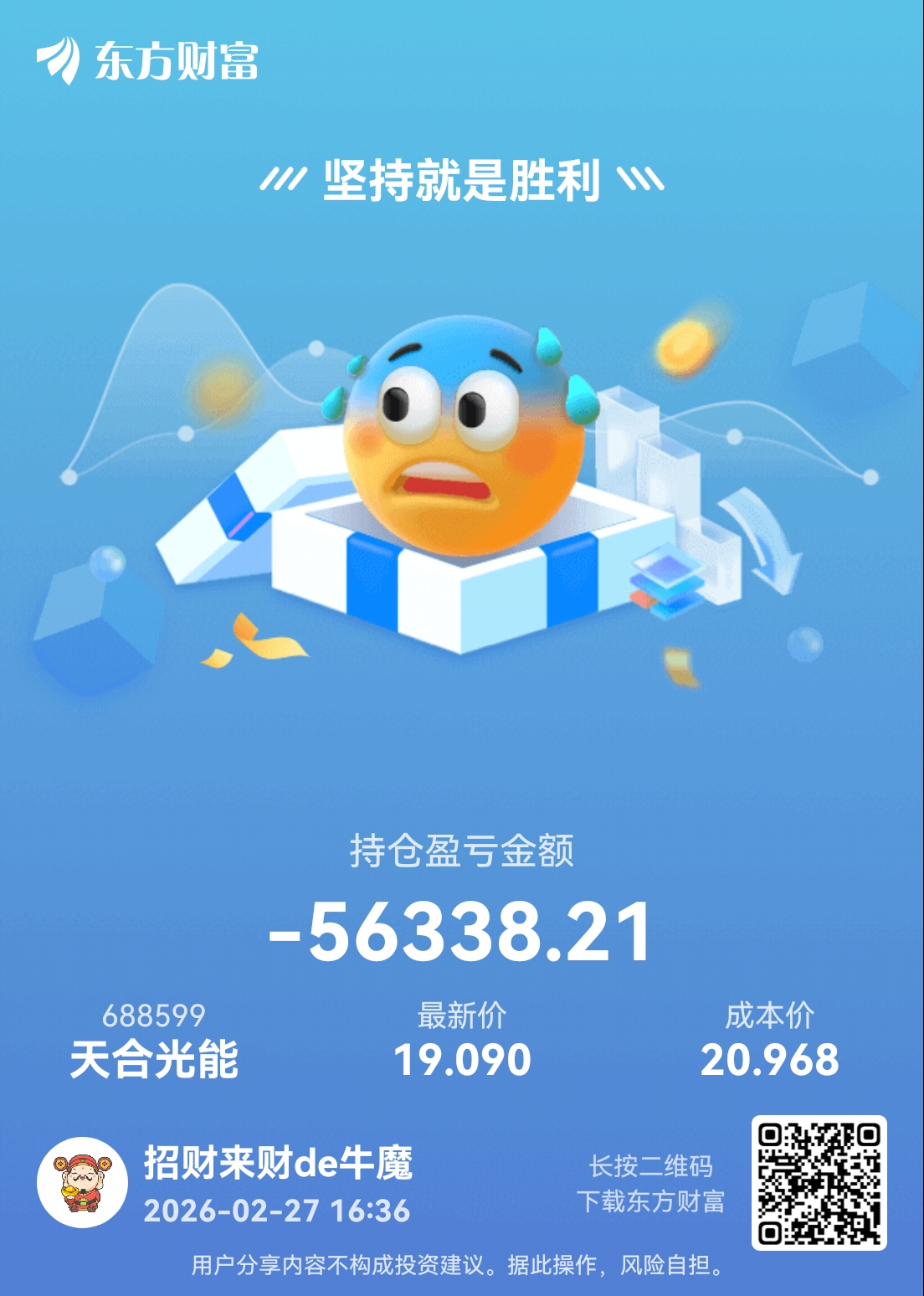 温馨提示: 1.根据《证券法》规定,禁止编造、传播虚假信息或者误导性信息,扰乱证券市场;2.用户在本社区发表的所有资料、言论等仅代表个人观点,与本网站立场无关,不对您构成任何投资建议。用户应基于自己的独立判断,自行决定证券投资并承担相应风险。《东方财富社区管理规定》