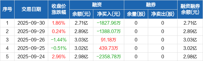 力芯微:融资净偿还1827.96万元,融资余额2.71亿元(09-30)