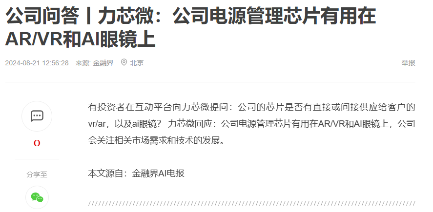 请各位老板为力芯微做一下“AI眼镜”概念的添加,同花顺都有东财没有。管他的,多个概念多条路。