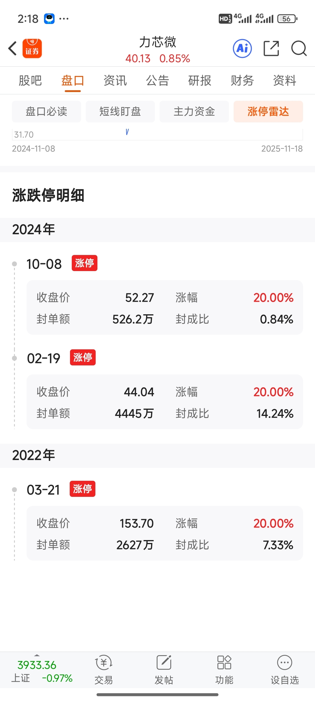 $力芯微(SH688601)$ 双数年才有涨停
