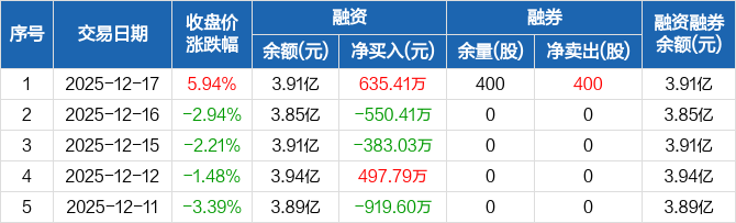 力芯微:融资净买入635.41万元,融资余额3.91亿元(12-17)