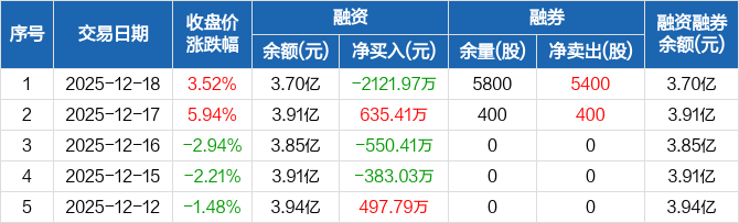 力芯微:融资净偿还2121.97万元,融资余额3.7亿元(12-18)