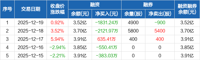 力芯微:融资净偿还1831.24万元,融资余额3.52亿元(12-19)