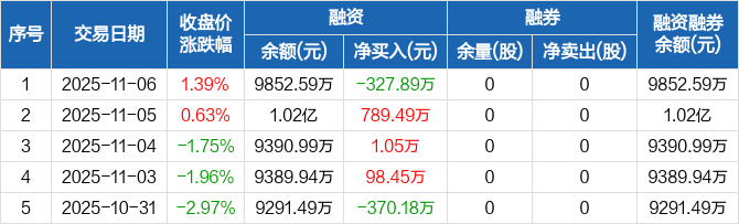 康鹏科技:融资净偿还327.89万元,融资余额9852.59万元(11-06)