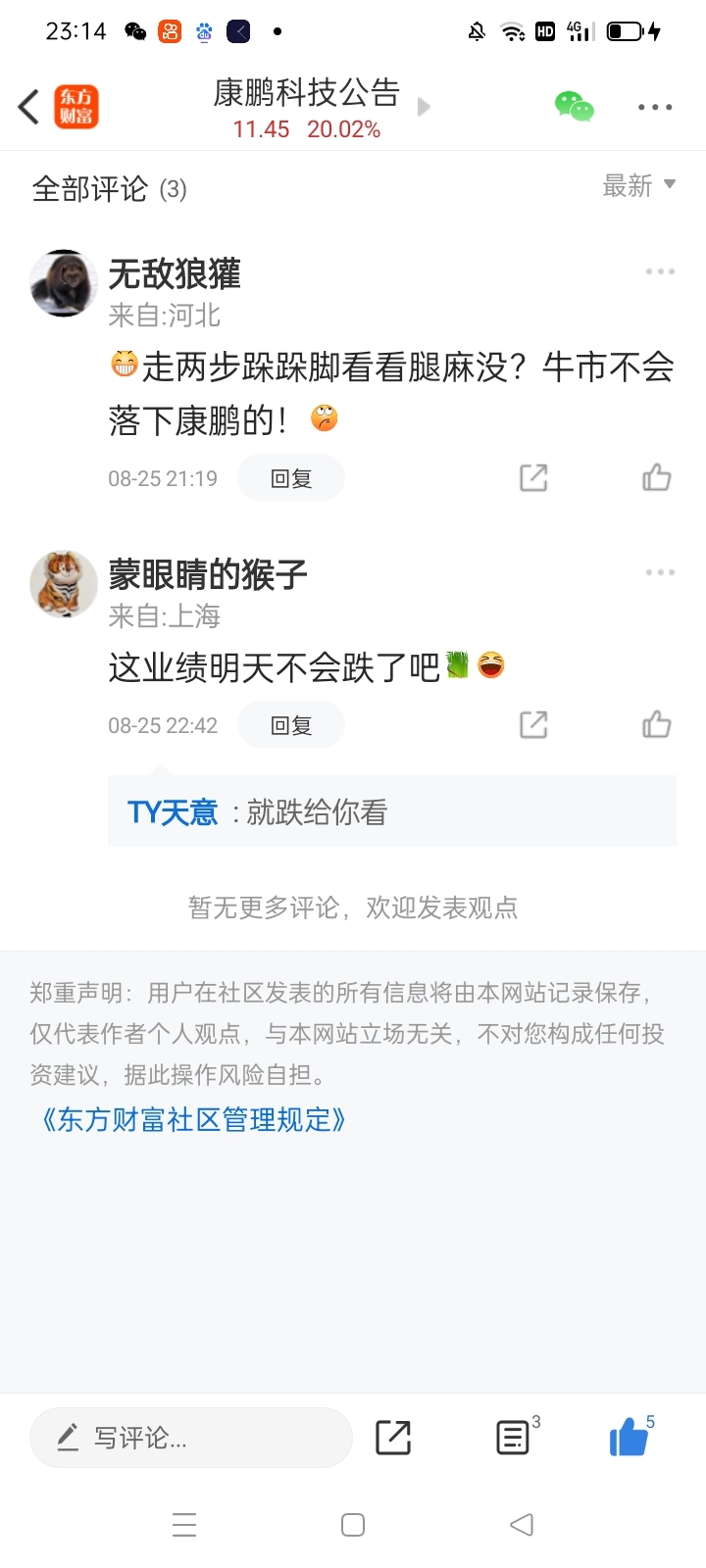 温馨提示: 1.根据《证券法》规定,禁止编造、传播虚假信息或者误导性信息,扰乱证券市场;2.用户在本社区发表的所有资料、言论等仅代表个人观点,与本网站立场无关,不对您构成任何投资建议。用户应基于自己的独立判断,自行决定证券投资并承担相应风险。《东方财富社区管理规定》