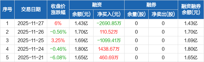 康鹏科技:融资净偿还2690.85万元,融资余额1.43亿元(11-27)