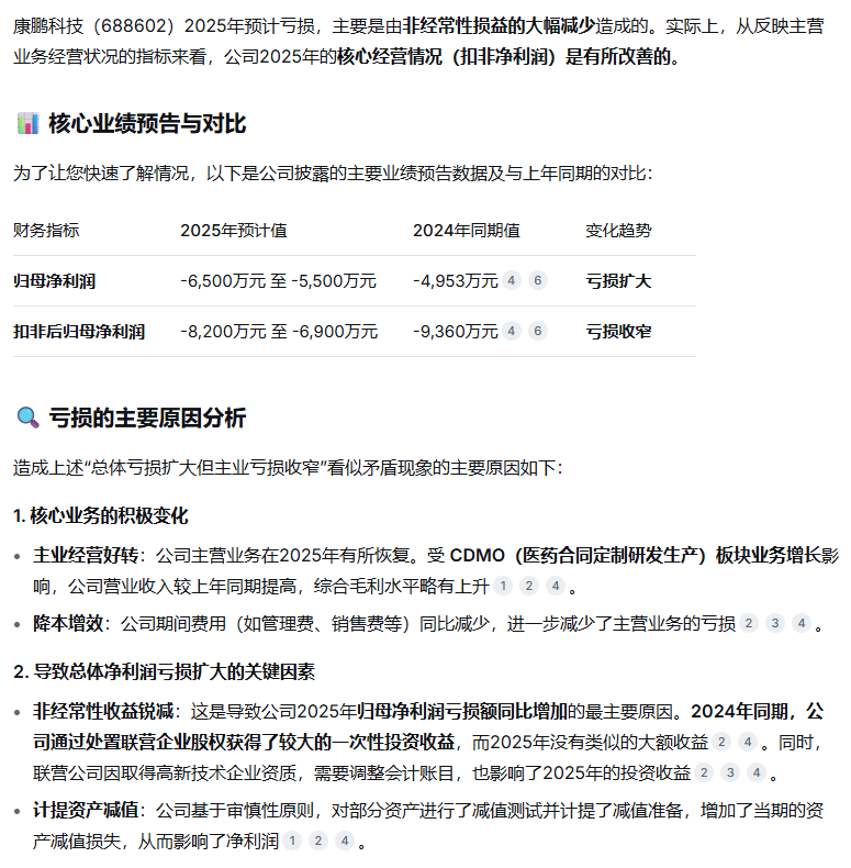 康鹏科技(688602)2025年预计亏损,主要是由非经常性损益的大幅减少造成的