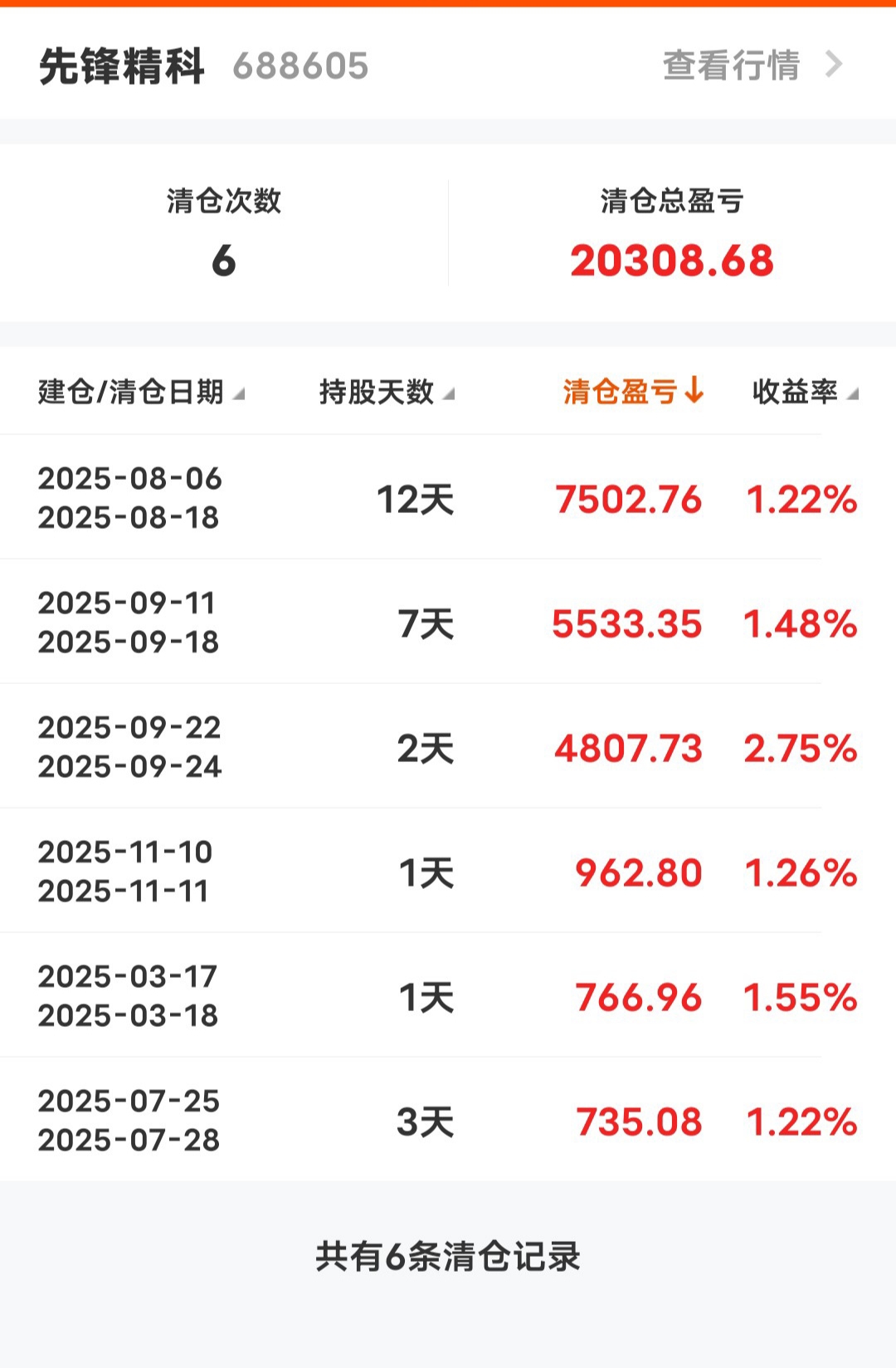 $先锋精科(SH688605)$ 虽然赚到不多,但先锋是我福星!每一次来都能小赚一点走。
