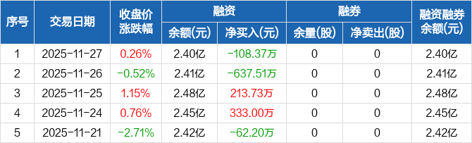 先锋精科:融资净偿还108.37万元,融资余额2.4亿元(11-27)