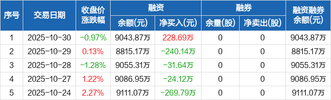 奥泰生物:融资净买入228.69万元,融资余额9043.87万元(10-30)