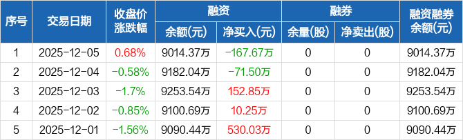 奥泰生物:融资净偿还167.67万元,融资余额9014.37万元(12-05)