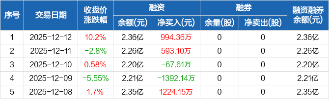 康众医疗:融资净买入994.36万元,融资余额2.36亿元(12-12)