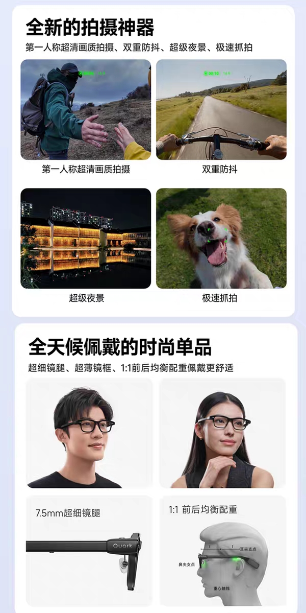 拍摄能力方面,夸克AI眼镜搭载了阿里巴巴自研的SuperRaw超级夜景模式,通过多帧合成与AI降噪技术,在低光环境下也能拍摄出细节丰富的照片。