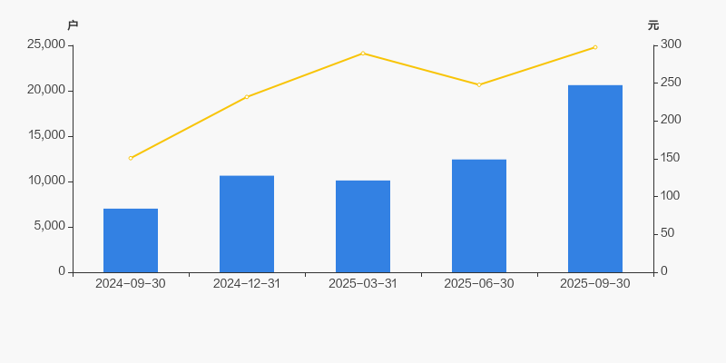 2024年9月30日至今,公司股东户数成倍增长,区间涨幅达194.12%。2024年9月30日至2025年9月30日区间股价上涨97.15%。