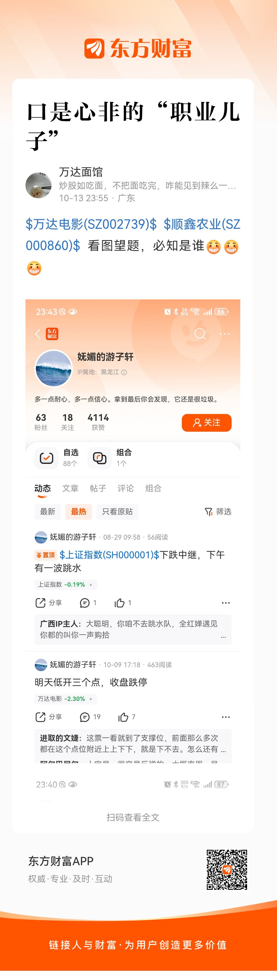 温馨提示: 1.根据《证券法》规定,禁止编造、传播虚假信息或者误导性信息,扰乱证券市场;2.用户在本社区发表的所有资料、言论等仅代表个人观点,与本网站立场无关,不对您构成任何投资建议。用户应基于自己的独立判断,自行决定证券投资并承担相应风险。《东方财富社区管理规定》
