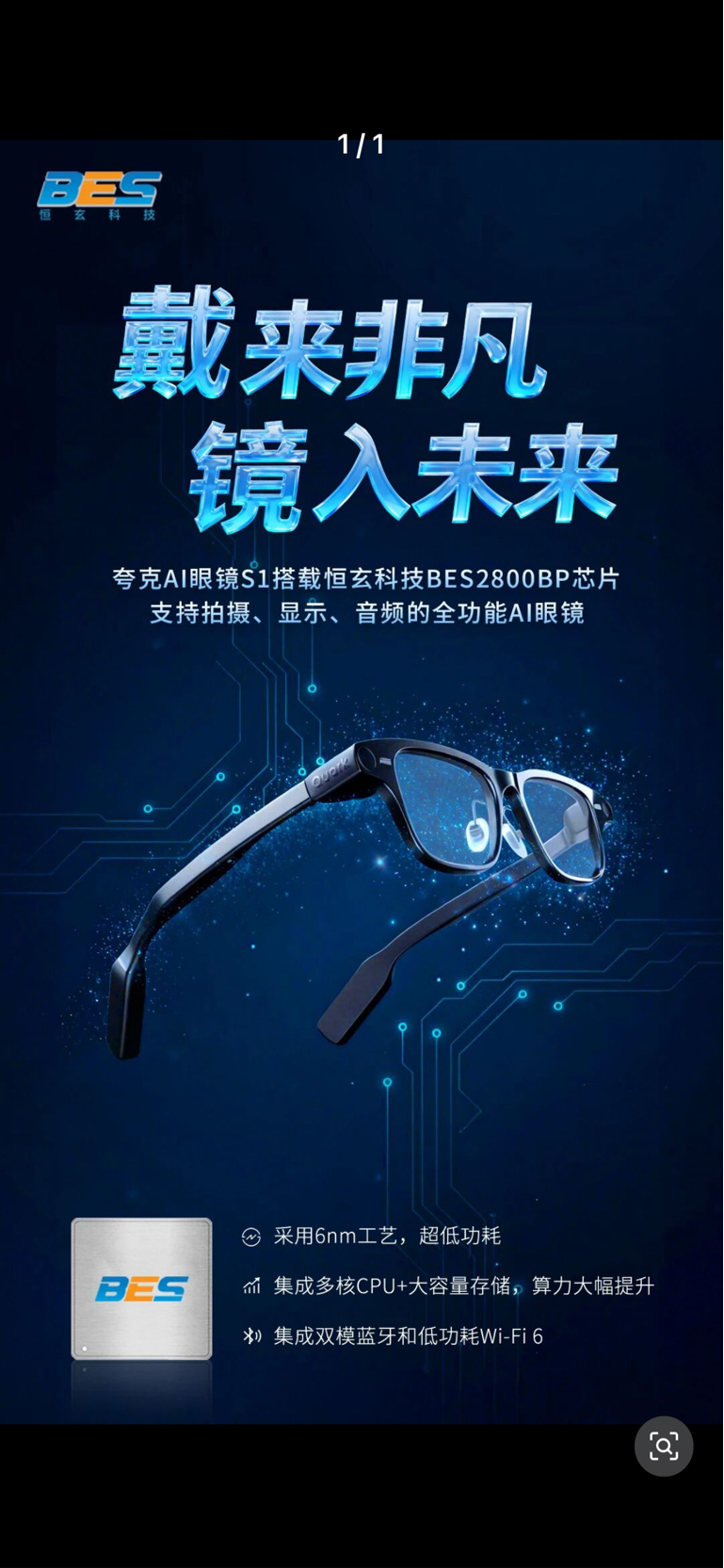 $恒玄科技(SH688608)$ “戴”来非凡,“镜”入未来 | 夸克AI眼镜S1搭载恒玄科技BES2800BP芯片