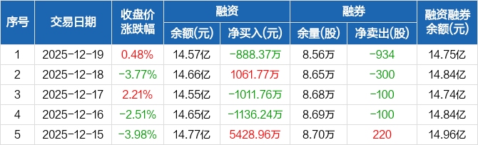 恒玄科技:融资净偿还888.37万元,融资余额14.57亿元(12-19)