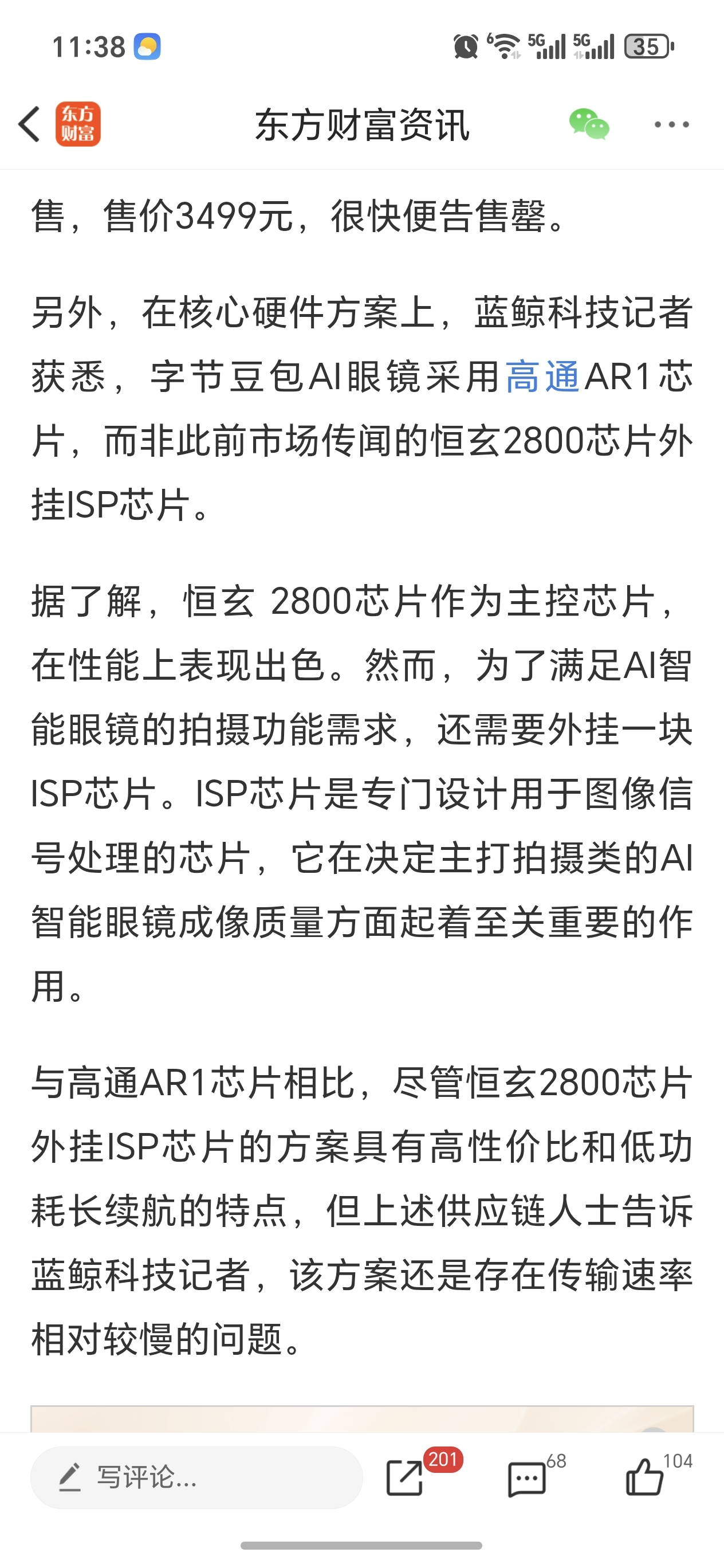 $恒玄科技(SH688608)$ 豆包AI眼镜才用了高通芯片,没有采用恒玄的