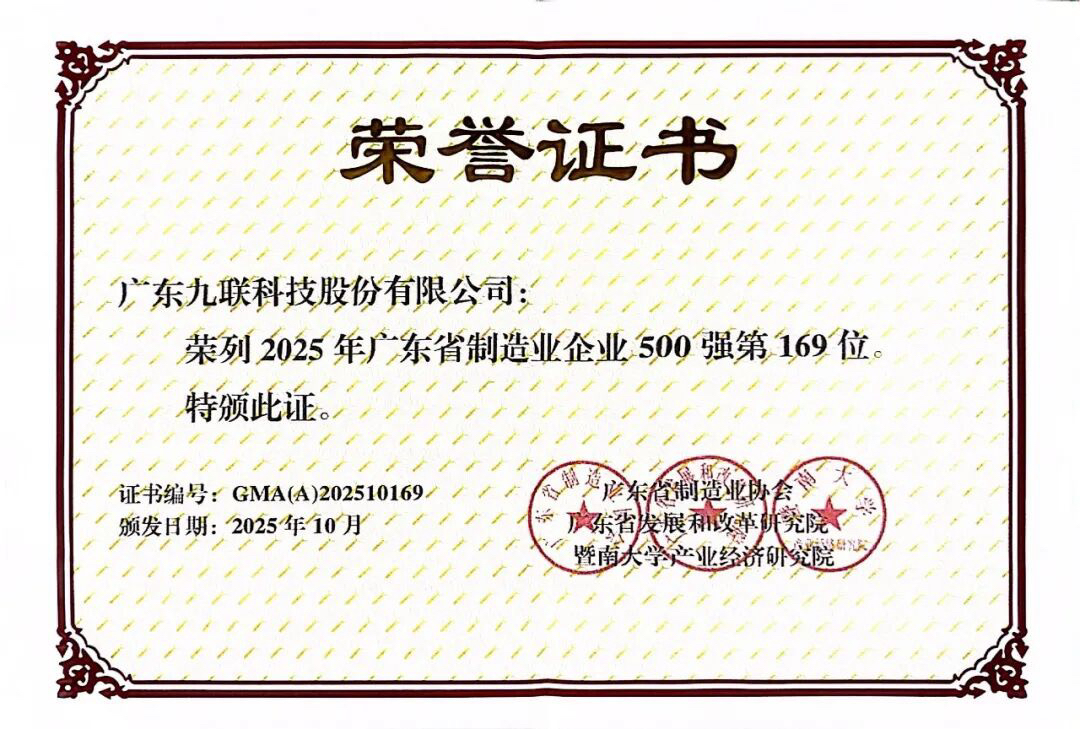 $九联科技(SH688609)$ 2025年广东省制造业500强企业峰会暨中国机床创新与应用论坛在东莞隆重举行,会上正式发布了广东省制造业500强榜单。九联科技凭借卓越的综合实力、稳健的经营韧性与持续的创新动能,成功入选榜单并荣列第169位,成为广东省制造业高端化转型浪潮中的亮眼代表。
