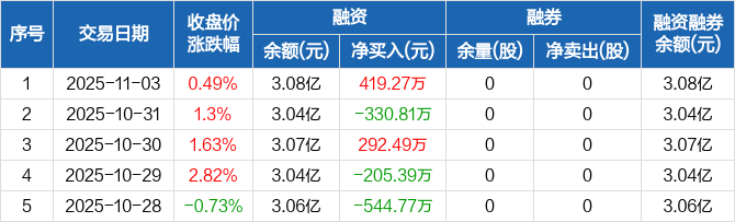 九联科技:融资净买入419.27万元,融资余额3.08亿元(11-03)