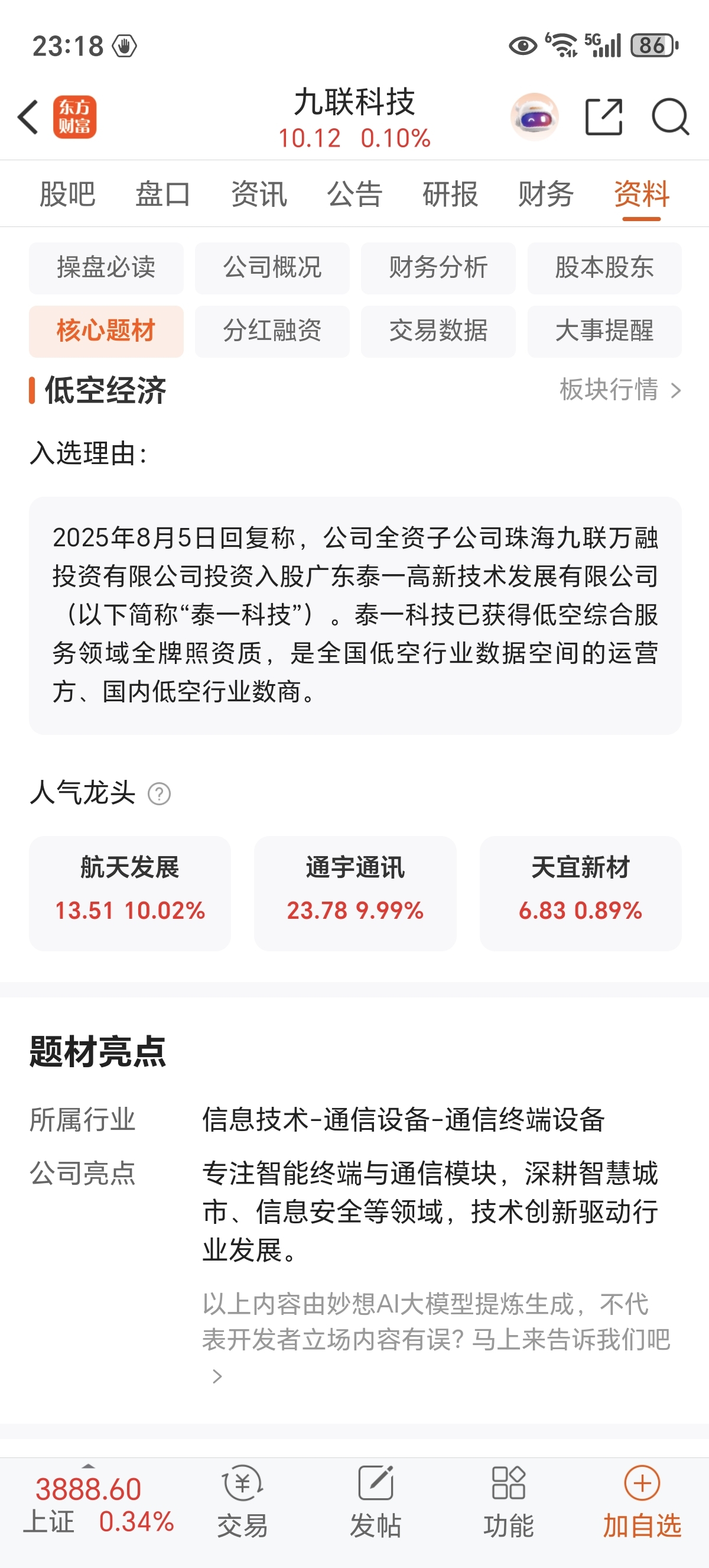 $九联科技(SH688609)$ 也是低空经济商业航天!概念!