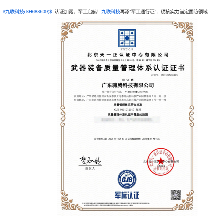 九联科技:军工概念!要涨!不需要有重组。重组成功就是【2026版的上纬新材】
