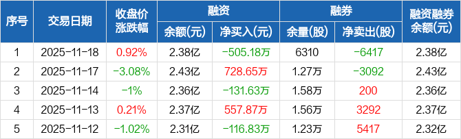 威迈斯:融资净偿还505.18万元,融资余额2.38亿元(11-18)