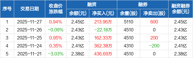 威迈斯:融资净买入213.96万元,融资余额2.45亿元(11-27)
