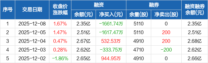 威迈斯:融资净偿还1661.74万元,融资余额2.35亿元(12-08)